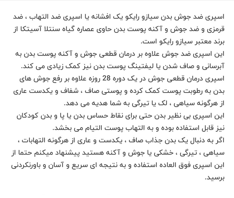 اگر به دنبال یک بدن جذاب صاف، یکدست و عاری از هرگونه التهابات، سیاهی، تیرگی، خشکی یا جوش و آکنه هستید، حتما از اسپری ضد جوش بدن SIAYZU استفاده و به نتیجه ای سریع و آسان و باورنکردنی برسید.