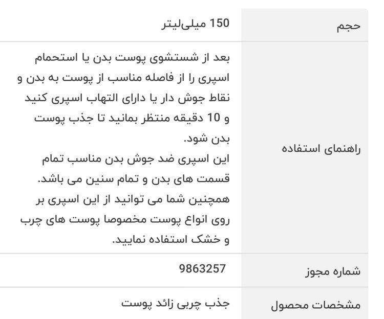 این اسپری ضد جوش علاوه بر درمان قطعی جوش و آکنه پوست بدن، به آبرسانی و صاف شدن و لیفتینگ پوست بدن نیز کمک زیادی می کند.