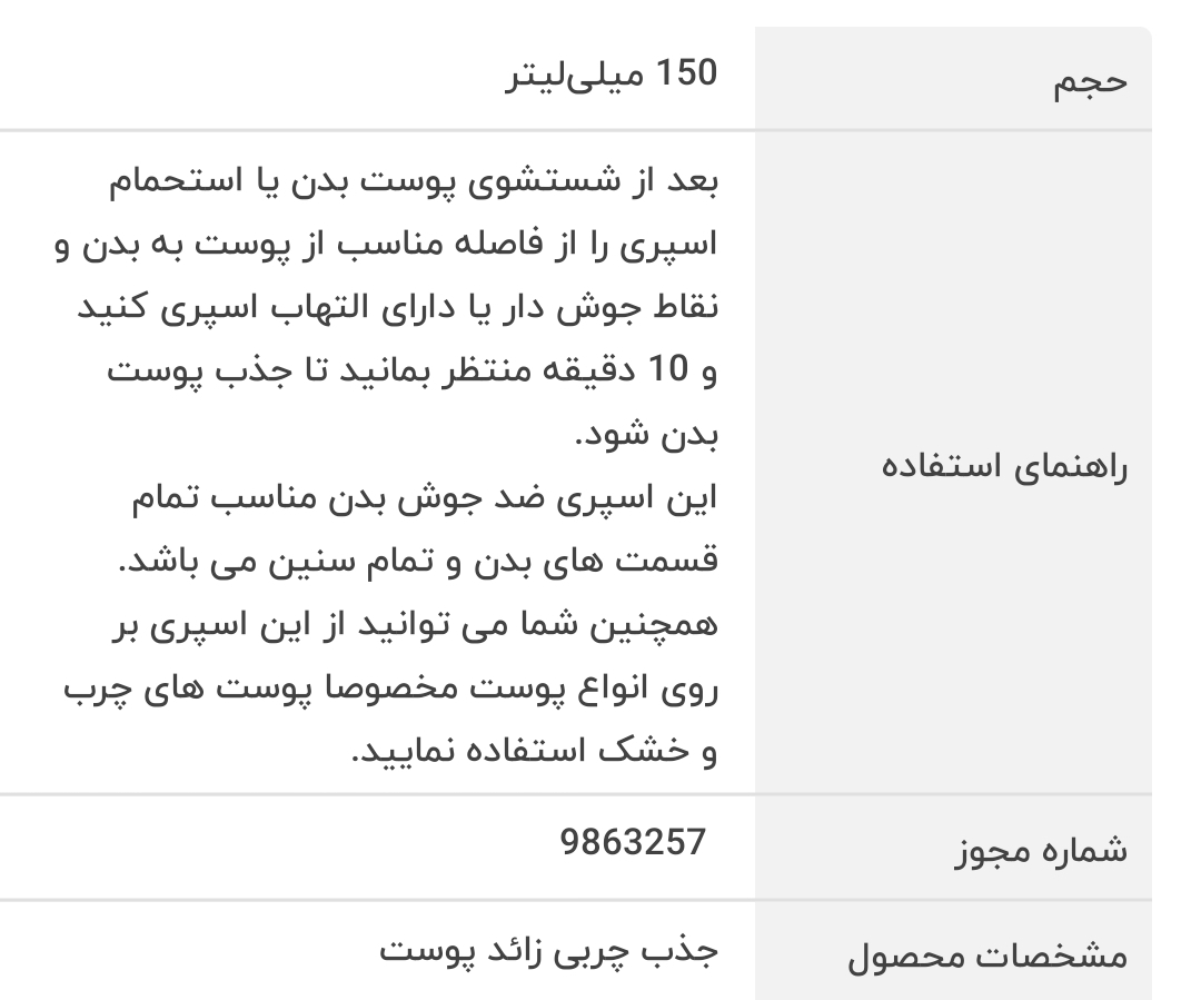 این اسپری ضد جوش علاوه بر درمان قطعی جوش و آکنه پوست بدن، به آبرسانی و صاف شدن و لیفتینگ پوست بدن نیز کمک زیادی می کند.