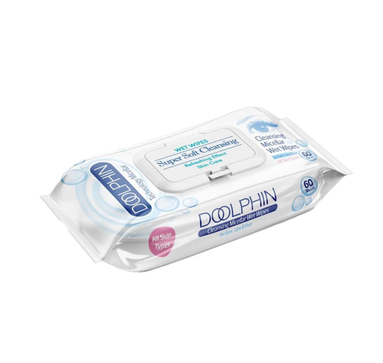 دستمال مرطوب پاک کننده ارایش دلفین بسته ۶۰ عددی