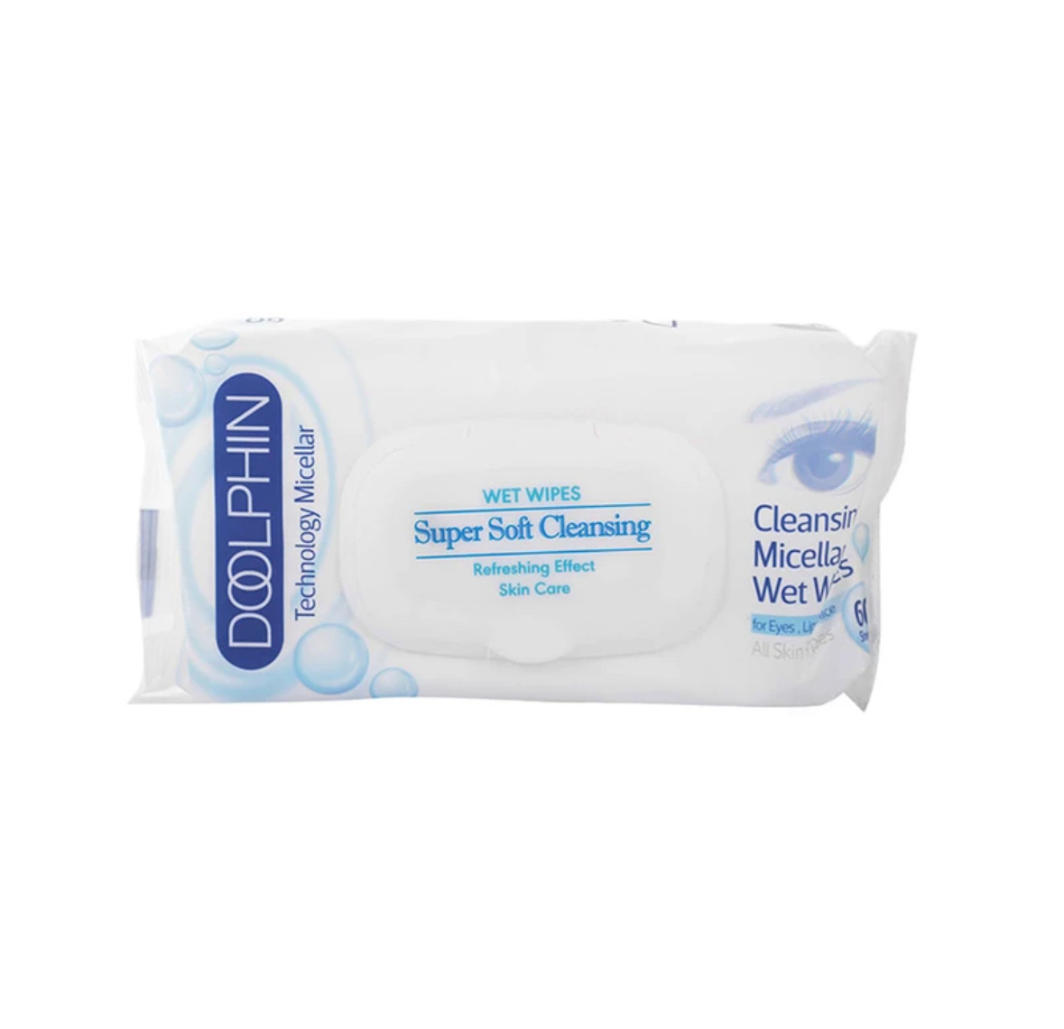 دستمال مرطوب پاک کننده ارایش دلفین بسته ۶۰ عددی